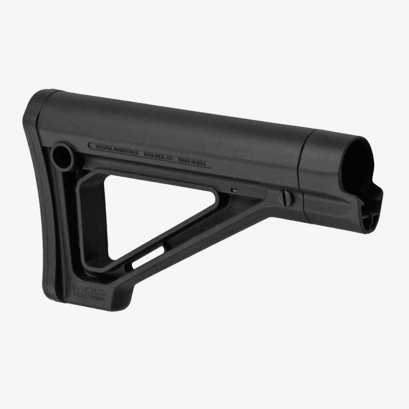 Il Calcio Fisso MOE per Carabina offre un'opzione di calcio fisso e non estensibile per i tubi di buffer di lunghezza carabina. Il Calcio Fisso MOE per Carabina ha un profilo sottile, un miglior supporto per la guancia e diverse opzioni di attacco per la sling, ed è compatibile con la Piastra ASAP e il Pad di Gomma Esteso PRS. L'installazione è semplice e non richiede la rimozione del dado castello o della piastra di bloccaggio. Utilizza il Magpul Type 1 QD Sling Mount.
