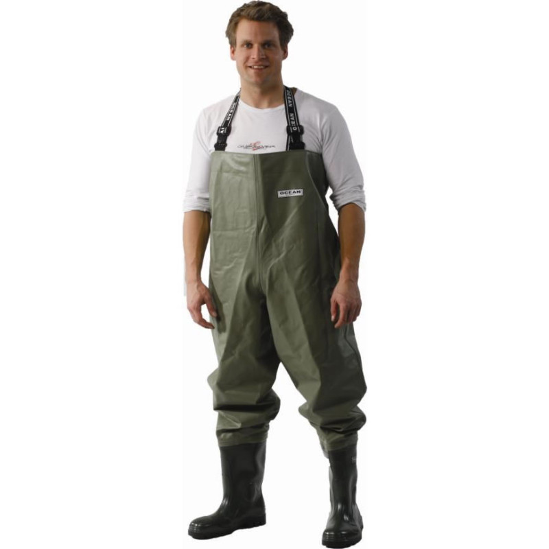 Wader ascellare in Smooth PVC 490 gr, interno in cotone lavabile. Sono affidabile nelle condizioni più estreme. Bretelle elastiche
