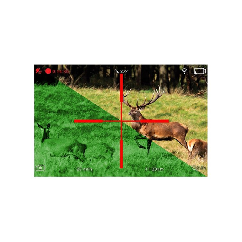 Il sistema Wi-Fi incorporato gli permette di connettersi in qualsiasi momento al tuo smartphone, tablet o computer e riprodurre in diretta ciò che stiamo mirando o osservando. L’applicazione per tablet e smartphone permette inoltre di gestire tutte le funzioni ed impostazioni del cannocchiale, oltre a permettere la gestione della balistica del tiro che si vuole effettuare, la taratura e l’aggiornamento del software.
